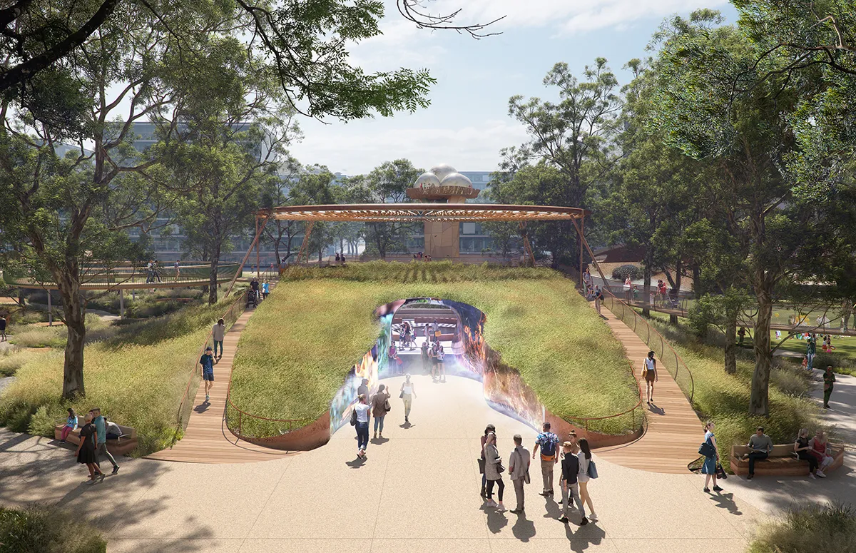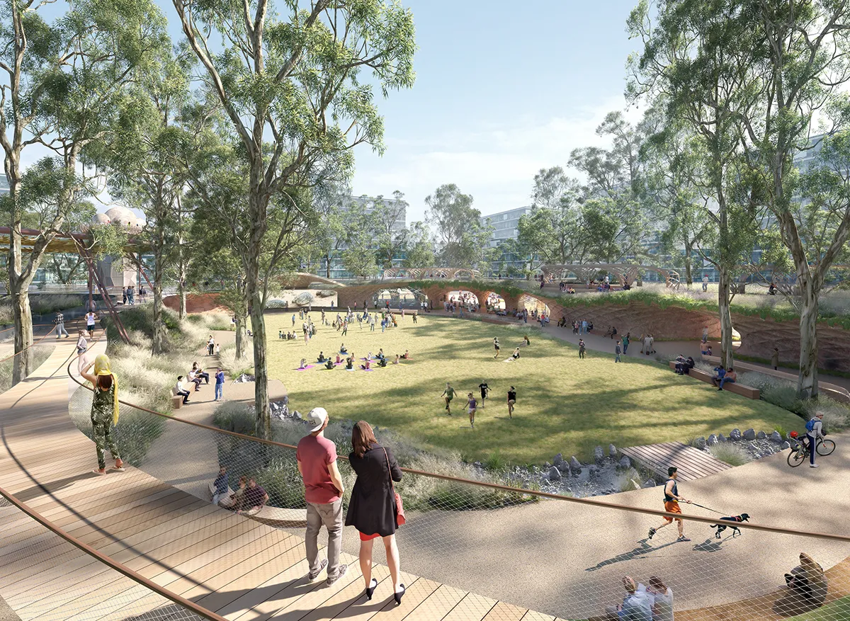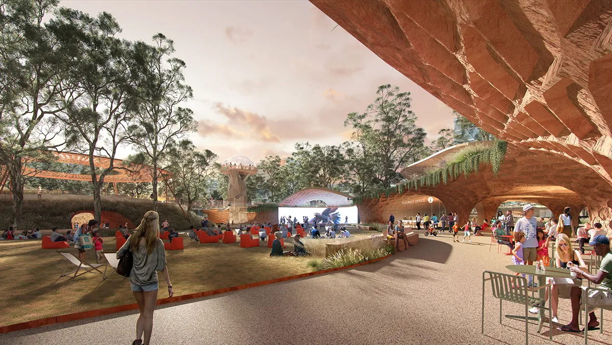 Designed to deliver the beauty and benefits of a connected Country environment to everyday users – the daytime workers, international and Australian visitors, and local residents – Central Park will draw people into recreated Country environments, connected by a network of elevated, immersive walkways. An immersive, multi-level play experience, based on the Grandmother Tree topped by an Eagle’s Nest, will attract families and children.