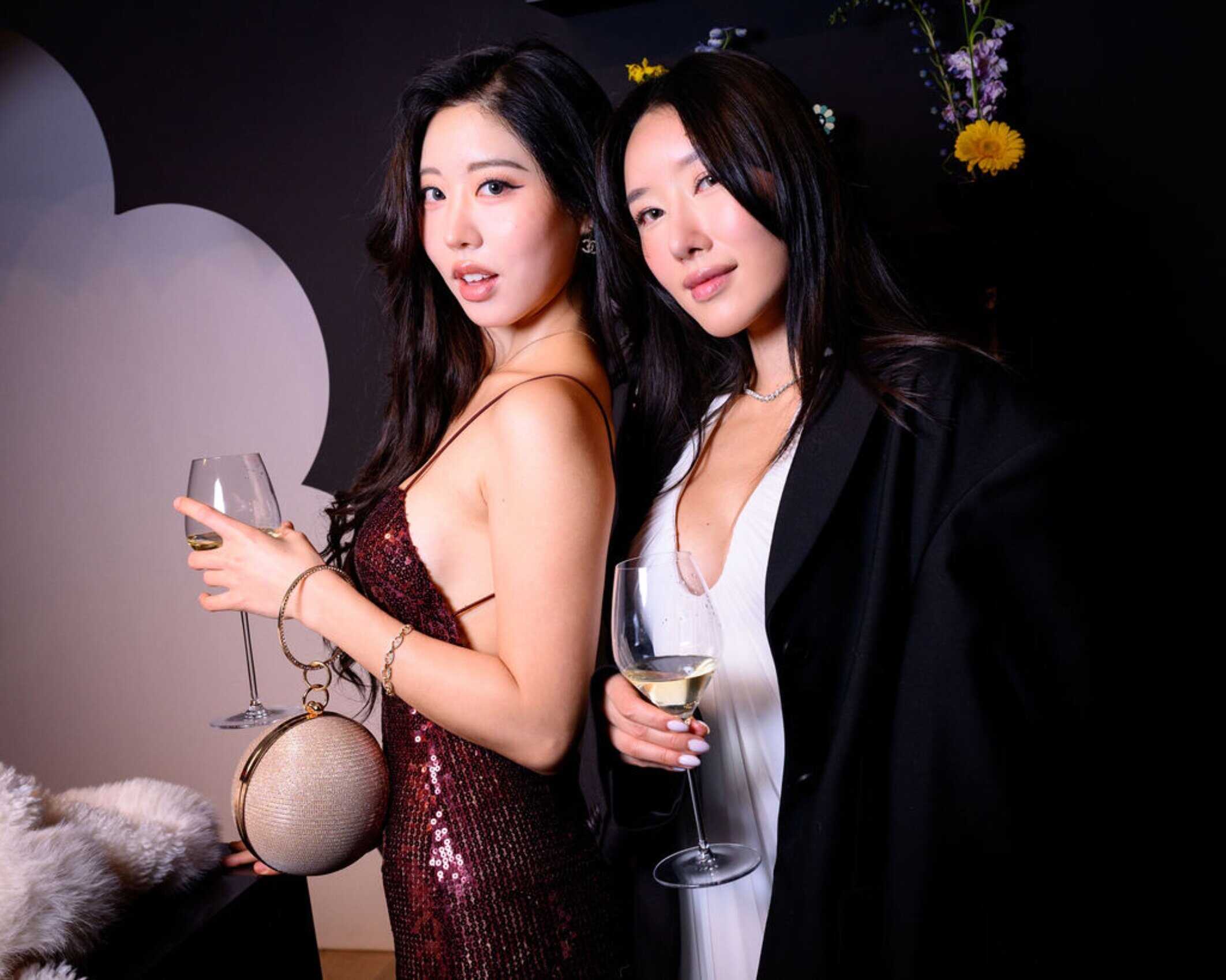 Murakami and Dom’s new collab finds bottles of the label’s Dom Pérignon Vintage 2015 and Dom Pérignon Rosé Vintage 2010 cast in a sleek black, accentuated by metallic pink or green labels surrounded with Murakami’s adorable blossoms. Both versions were poured for guests to experience throughout the night at the duo’s Murakami Flower Studio, an immersive pop-up on Mott Street that opened the following day. The blooms also lined the walls, alongside a rainbow of miniature flower bouquets in a multitude of colors—much like Murakami’s original flower prints themselves. To complete the evening, a custom AR mirror photo booth allowed guests to playfully move around as digital versions of the flowers as well, set against a jet-black backdrop—all remaining perfectly on-theme.