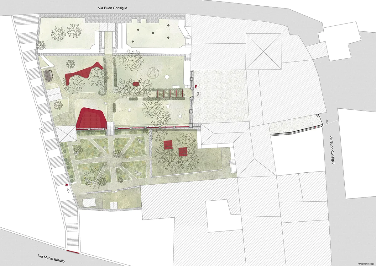 Designers: Pool Landscape srl: Landscape Arch. Ilaria Sangaletti, Arch. Caterina Gerolimetto, Doct. Agr. Elisa Frappi, Landscape Arch. Stella Gelmini.