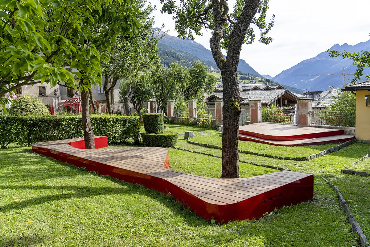 The project aims to improve the public space by redesigning the entrances, adding equipped areas and planting new greenery in the existing flowerbeds, inspired by the species found in the Stelvio National Park and the recipe for the digestive herbal liquor ‘Braulio’, reinterpreted by selecting some of the more ornamental varieties.