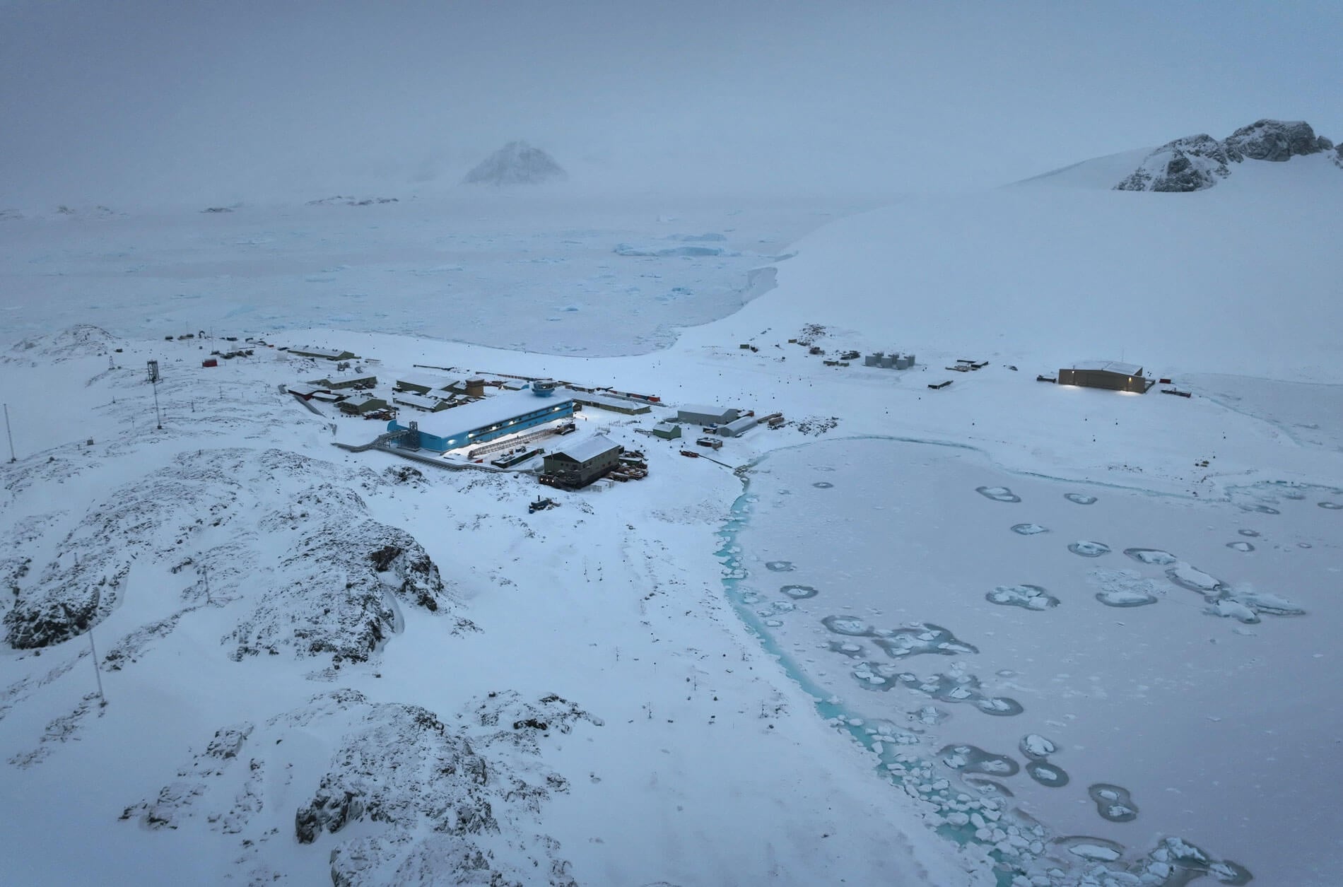 The building consolidates multiple BAS programmatic needs—field preparation areas, workshops, medical facilities, offices, recreational spaces, a central store, and critical plant services—all under the same roof in an aerodynamic form, oriented to perform well with the prevailing winds, the architects said.