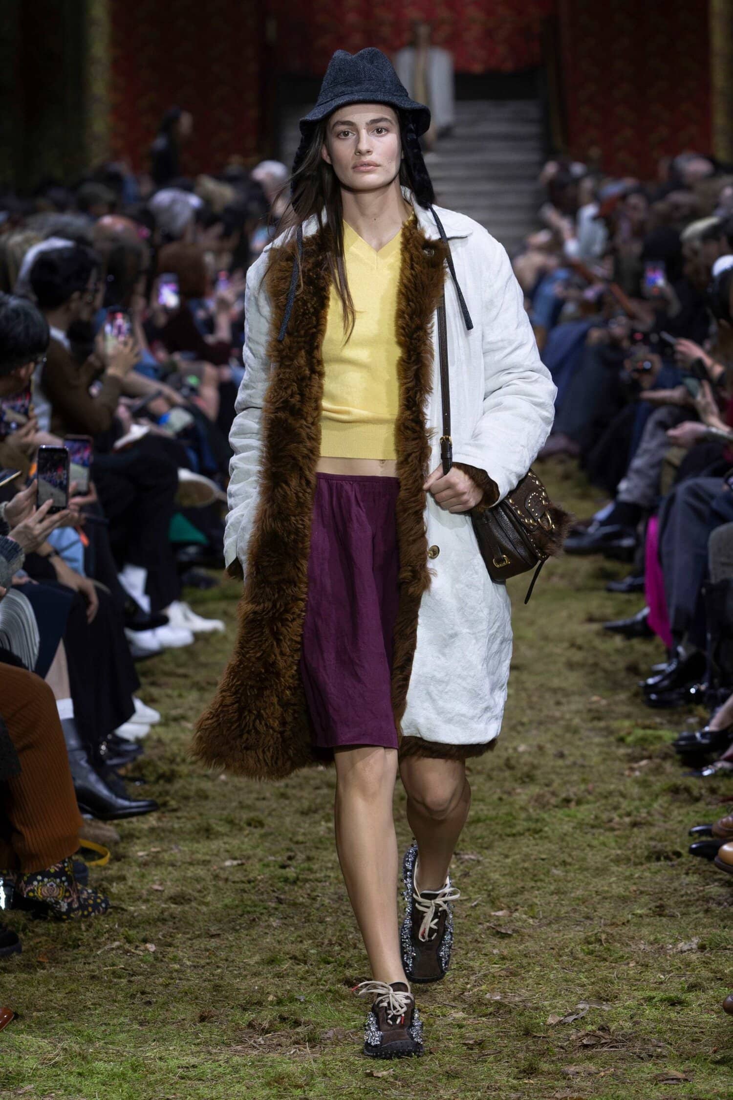 Those leathers also felt very reminiscent of offerings from the recent Prada menswear show, though, to be fair, Miu Miu has often showcased a similarly lived-in approach to leather.
