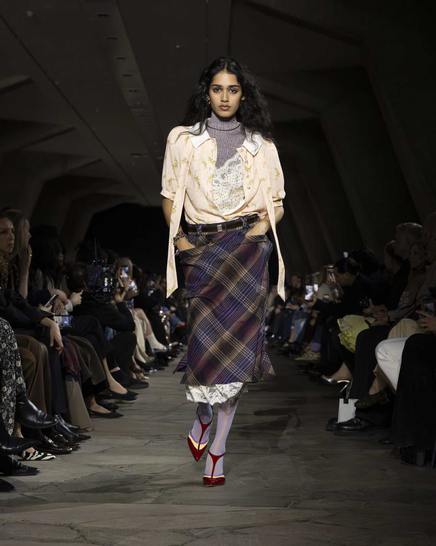 Take the the most recent collection. The way he mixes materials and patterns — the lace with the palettes and the plaid — and how he transforms the brand’s signature metal mesh season after season, this time around turning it into a below the knee tea dress with a ditsy print, among other things. He even makes ditsy floral prints look cool!