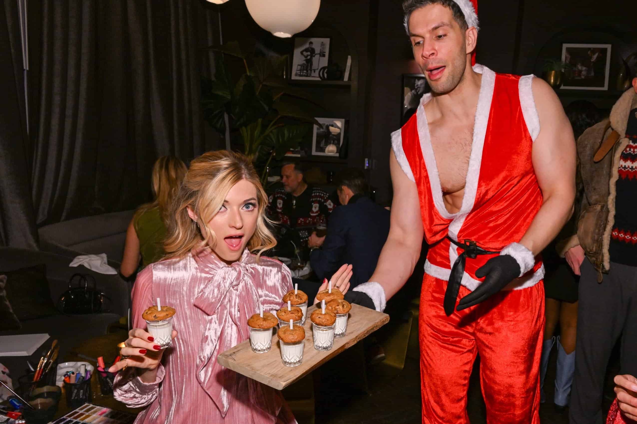 The exclusive Nexus Club turned into a Winter wonderland with a gorgeous Christmas tree and custom Jumelle gondola for the all-important photo moments. It wouldn’t be a Daily holiday party without a sexy Santa on hand to take photos and flirt with guests. Artist Pepe Munoz was also there to sketch guests and give them custom illustrations to take home.  DJs Chloe + Gabe provided the jams for the night with a welcome array of holiday classics. Drinks were courtesy of our friends at DAOU wine and 21 Seeds tequila and there was even milk and cookies on hand for those who wanted a Santa Claus worthy treat.