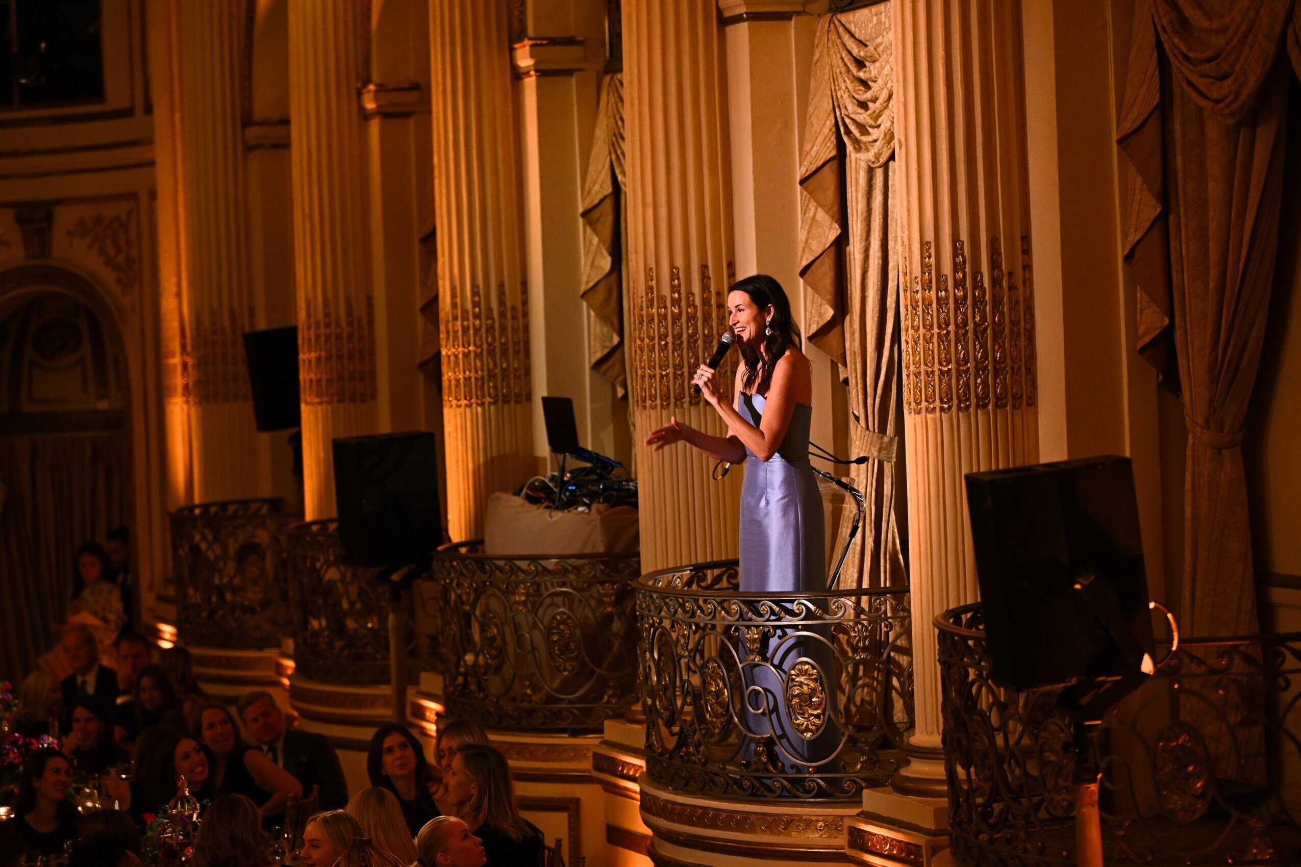 After a lively cocktail, guests took their seats in the Ballroom among tableaus of floral birdcages that blended flawlessly within the grandeur of the storied room. Soon after dinner service commenced, Associates Committee Chairman Marcella Hymowitz, striking in a structural black Khaite gown, introduced MSK Pediatric Hematologist-Oncologist Dr. Julia Glade Bender. Dr. Glade Bender spoke on how the vital funds raised that evening would provide for critical research on new treatments for children with rare cancers. Created and led by MSK Kids physicians, these clinical trials are not yet eligible for external funding from sources such as pharmaceutical companies or granting agencies. Therefore, to advance this leading-edge research, The Society is working to raise funds to fully underwrite the studies that provide crucial insights to advance our understanding and treatment of pediatric malignancies.