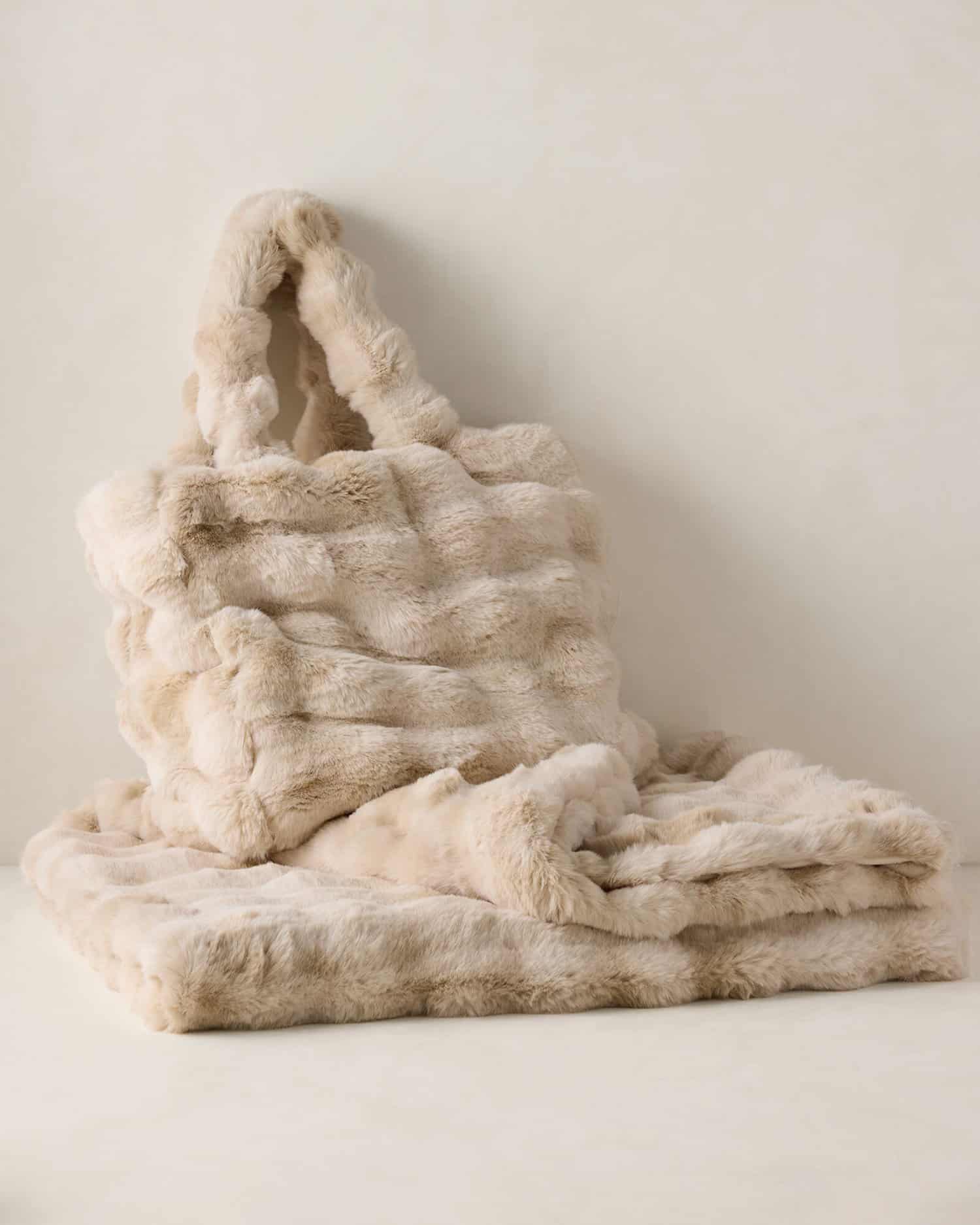 Faux fur throw blanket and tote, $238, HavenWellWithin.com