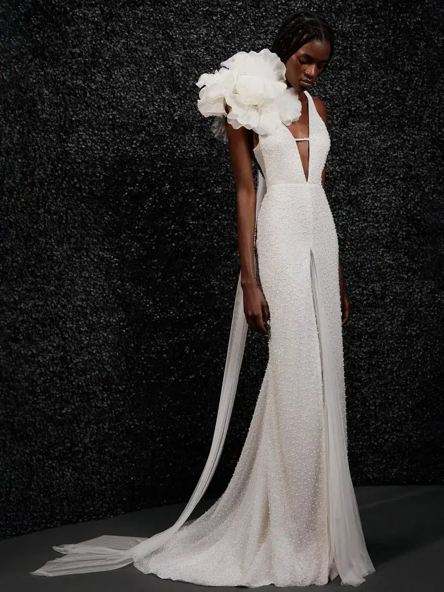 Not one to let a little thing like a global pandemic throw her off her licensing game, the following year, Wang signed a 10-year deal with the much higher-end Barcellona-based bridal company Pronovias for a line called Vera Wang Bride. The new line would be priced at around $2,500-$5,000, significantly lower than the couture wedding gowns she designs and sells out of her boutique and in New York, but higher than her collection for David’s Bridal, which generally started at just under $1000.