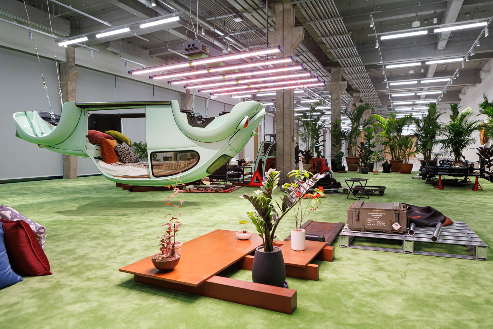 A freestanding tower shaped like a silo designed by James Turrell features prominently at Dib Bangkok. The artwork, titled Straight Up, is evocative of similar installations in Turrell’s Skyspace series, like the one at Friends Seminary in New York. Patrons climb a staircase before passing through a doorway to enter the immersive artwork.