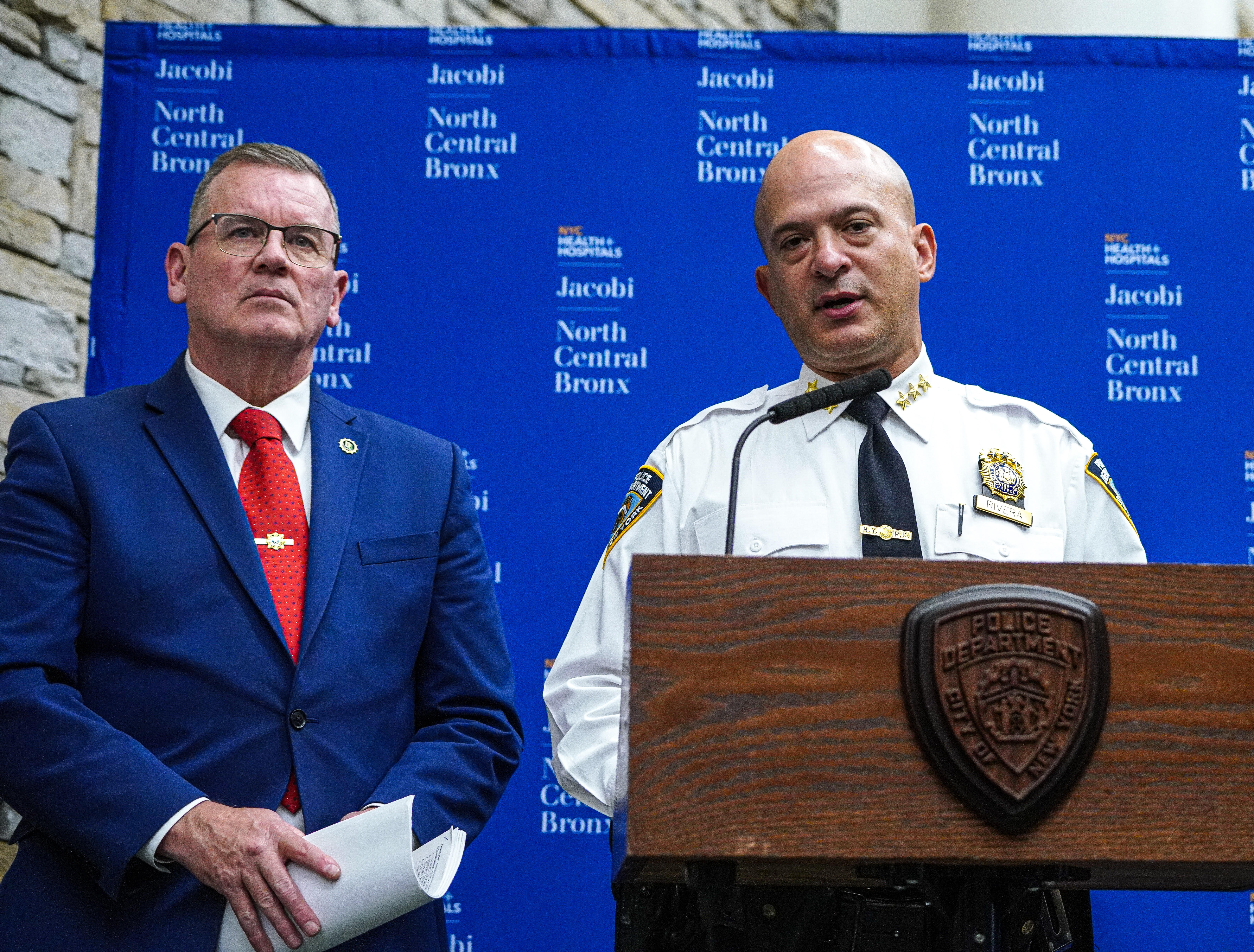 “An officer then discharged her firearm, striking the perpetrator twice, once in the lower back and once in the right arm. Officers recovered a loaded firearm in a bag on his person,” Chief Rivera said. “The officer who sustained a serious head injury was immediately rushed to Jacobi Medical Center. Thankfully, he is currently in stable condition. The perpetrator was also brought to Jacobi Medical Center and is in critical condition.”