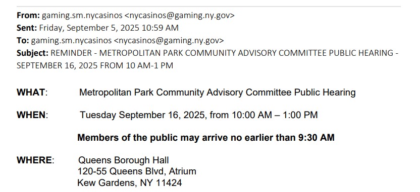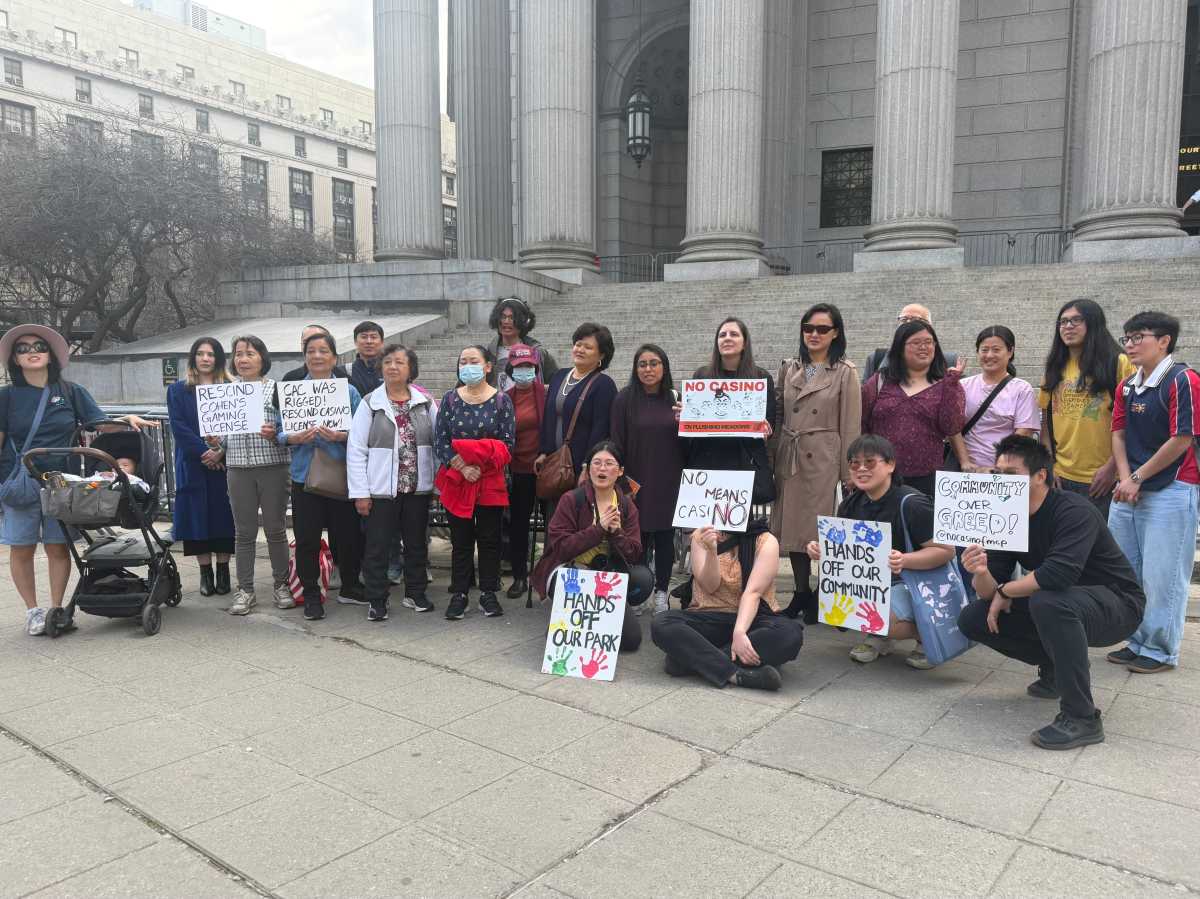 “You do not need to be a genius to know how dangerous this reckless development is for our public land and our livelihoods,” said casino opponent Kara Fan. “Today, individuals from Queens neighborhoods that will be most impacted are courageously standing up to this entrenched system — even without a lawyer — to make their voices heard.”