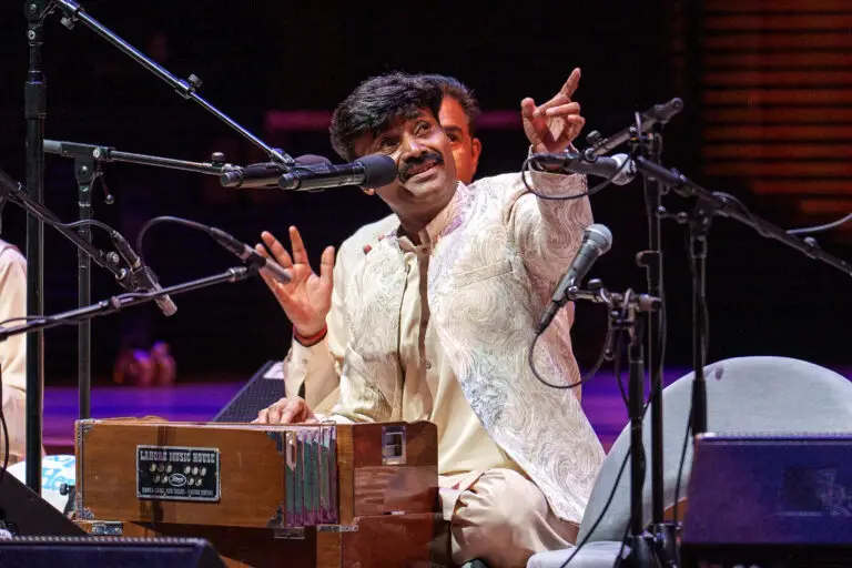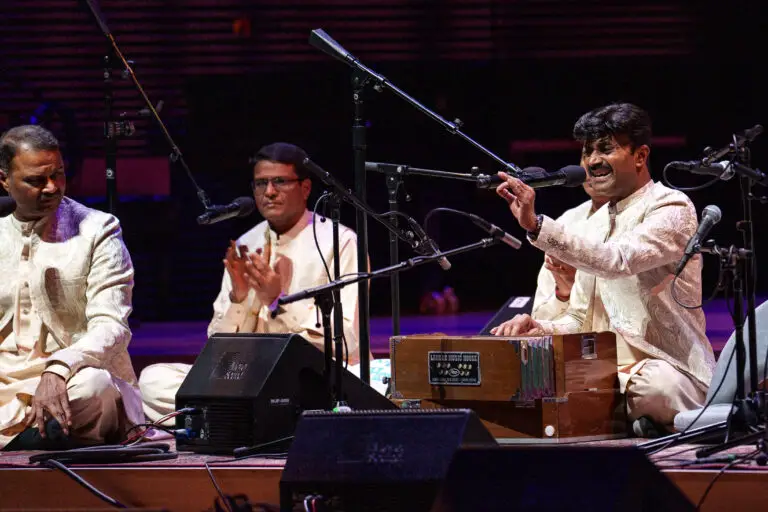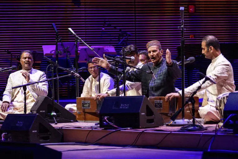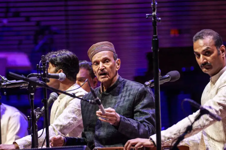 The Saami Brothers, featuring Ustad Naseeruddin Saami, kicked off globalFEST in the Wu Tsai Theater with their take on Khayal. Known as the living embodiment of Delhi Qawwal Bacha Gharana – a musical style originating in the 14th century – the Saami family is the last to practice this unique and spiritual music. Featuring haunting and mournful harmonies, the family improvises their songs on the spot. Their Khayal is a deeply spiritual experience that combines Turkish, Arabic, and South Asian traditions into one unified experience. Their performance, while profound, is best listened to with a mindset seeking meaning, as their songs use similar melodic phrases repeatedly. This lulling effect is wonderful for self-reflection, but can also be monotonous or sleep-inducing.