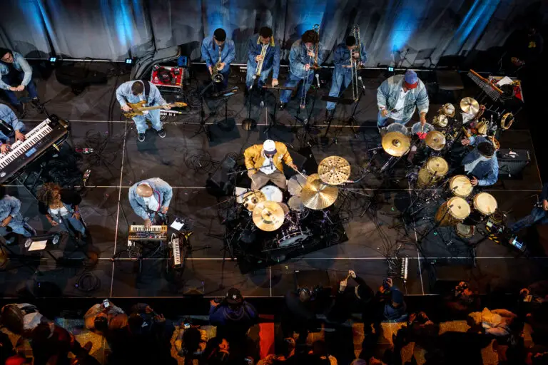 At the same time as Maria Mazzotta, David Rivera & La Bámbula were up in the Grand Promenade. In the most challenging acoustic space of the night, the Latin Jazz and Bomba big band was in front of a shoulder-to-shoulder packed crowd. Playing through a repertoire of jazz, bachata, salsa, and Bomba, the band got the crowd dancing with powerful polyrhythms and solos from across the horn, rhythm, and vocal sections. Citing the current political crisis in the United States, Rivera said, “In tough times like this, music does what it does best [unites us].” The crowd responded by dancing even harder in a rebellious celebration of joy.