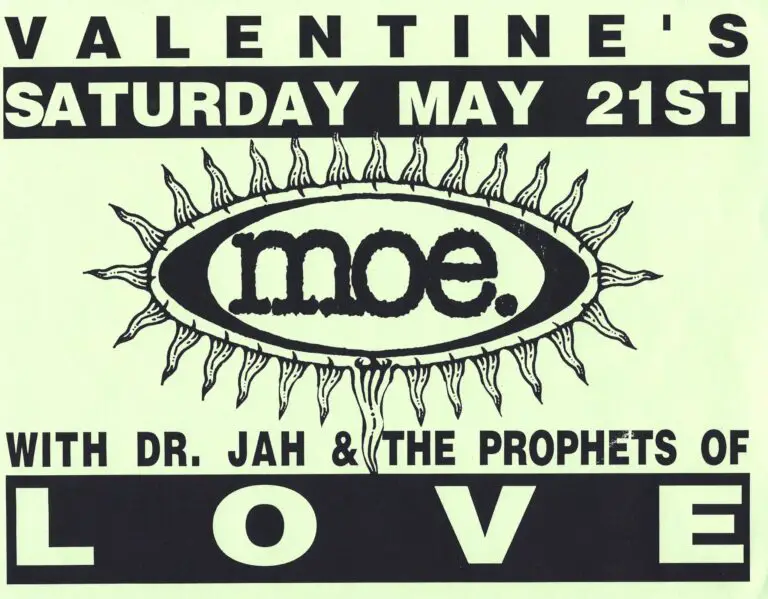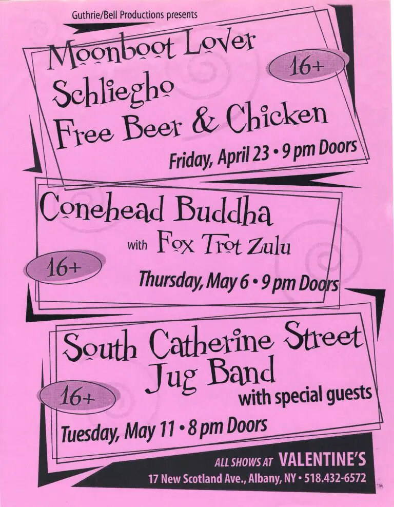 Peter Prince (Moon Boot Lover): 1994, making the way to play Valentines and Bogies. The first time we came to town, we played with Dr. Jah, and it wasn’t a Greg Bell show, but our first manager Darren Cohen introduced us to Greg when we played in Troy.