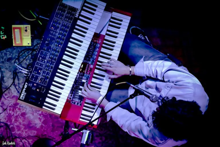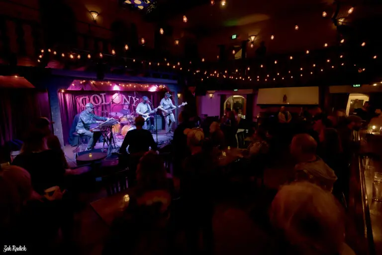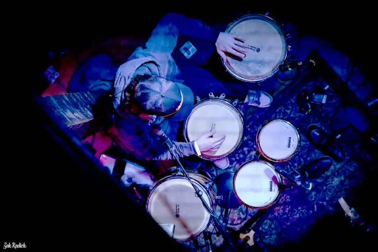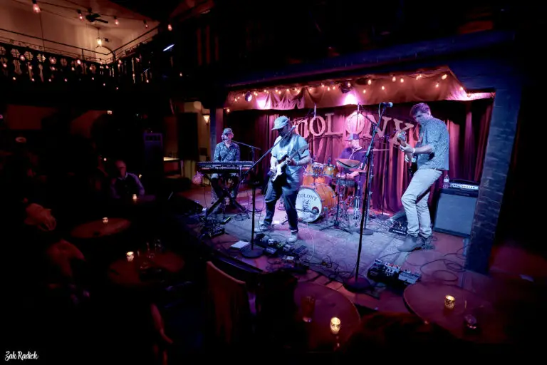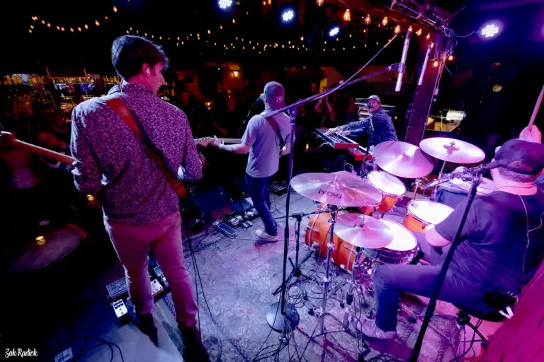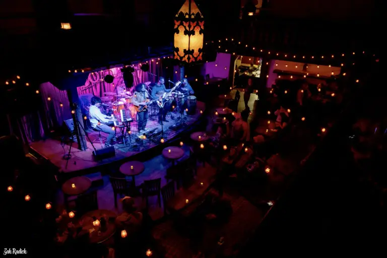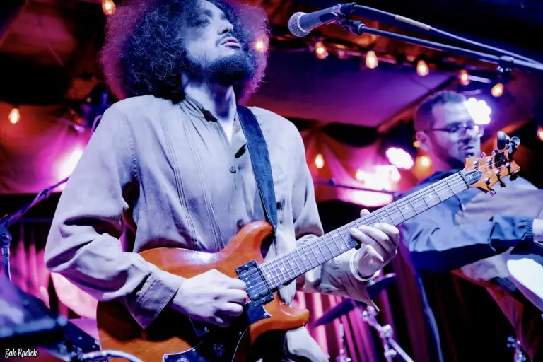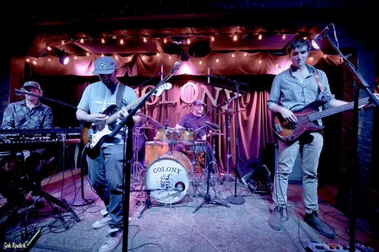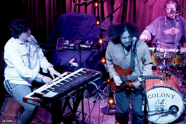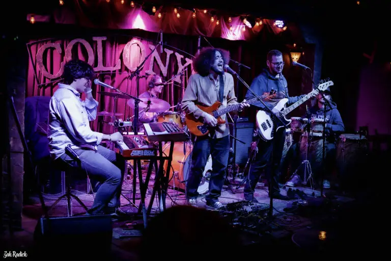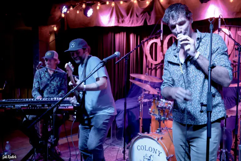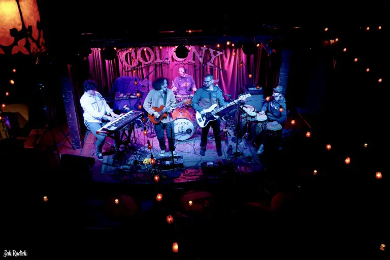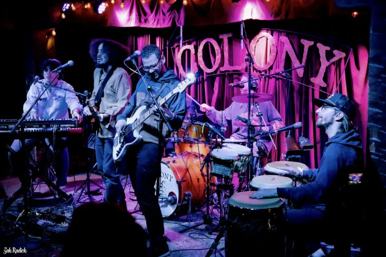 The show began with a trio of tunes from their recent Migration EP, “Angelfish,” “Birds,” and “Wings of the Birds,” setting a meditative, melodic tone. But it wasn’t long before the band dove into deeper waters. A particularly moving “Frozen Lake” melted seamlessly into Lashomb’s “Balloons,” and just like that, The Colony turned into a swirling dancefloor. Tables were spontaneously cleared as the crowd got down and dirty in a true Woodstock moment.