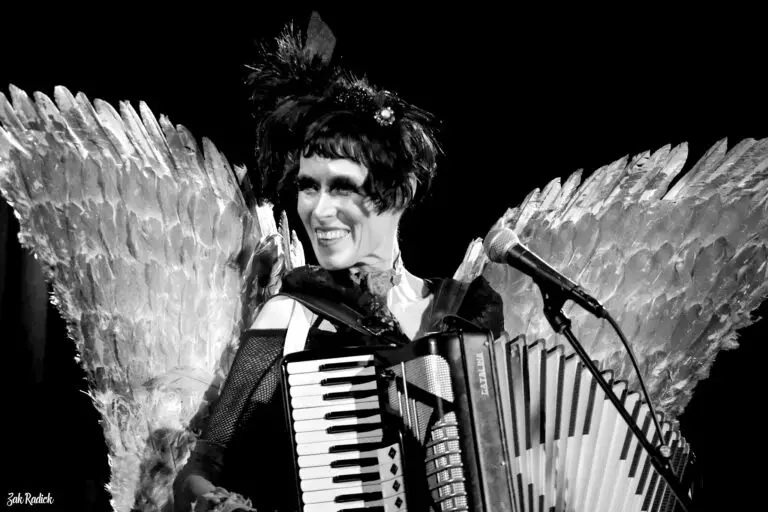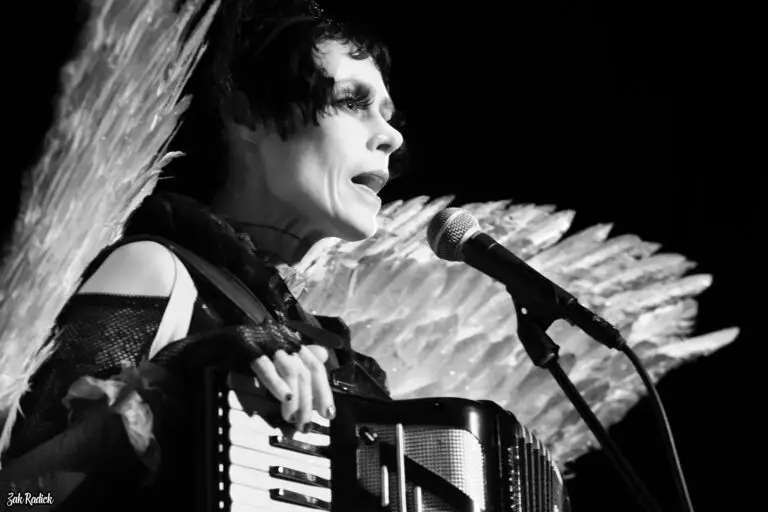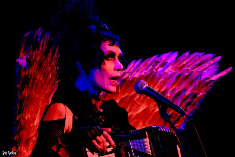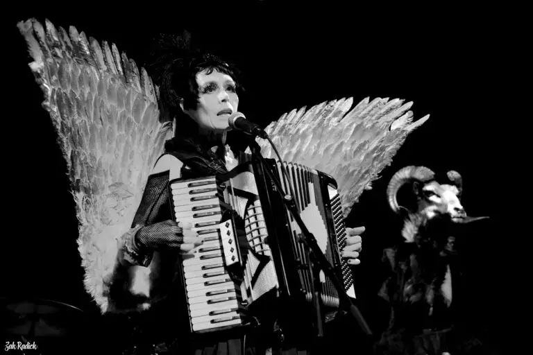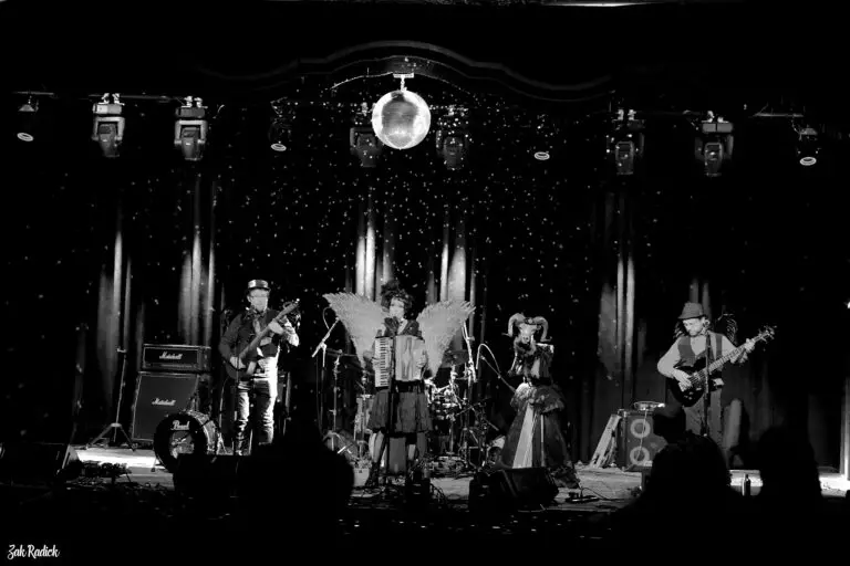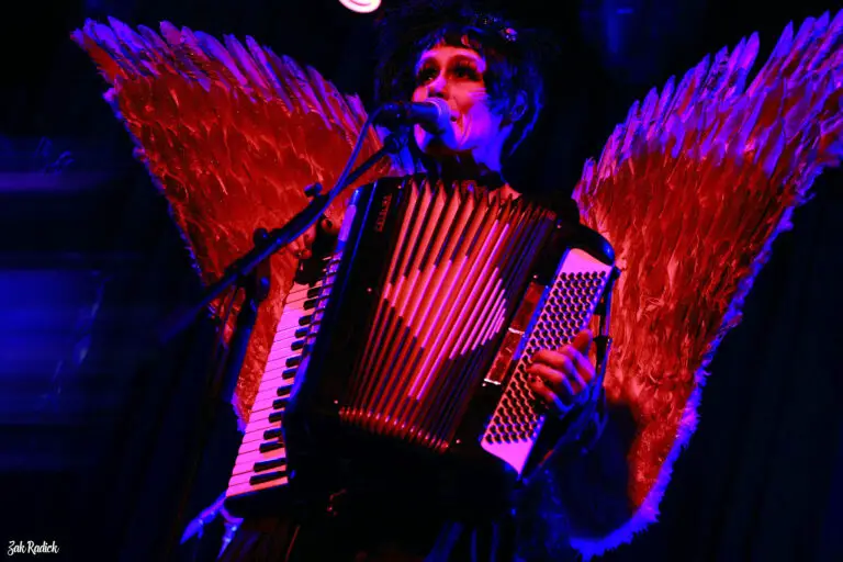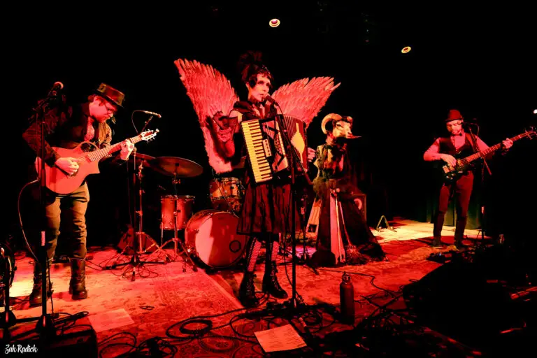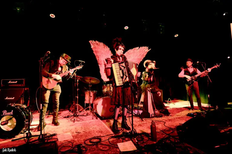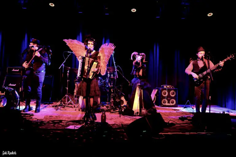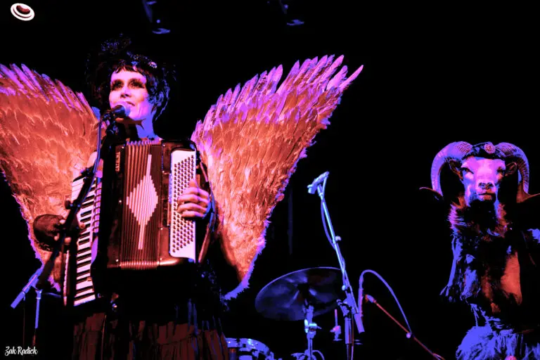 Launching into Tooth and Claw and Sass,” followed by a delirious Science!”, the band unleashed their signature sonic storm. Inspired by an eclectic mix of oddball bands like The Mother’s of Invention and Frank Zappa, System of a Down and Mr. Bungle, their recipe is a heady blend of klezmer, punk, cabaret, and pure madness. Each song was a spell of defiance and joy. Bella’s Bartok has long been the beating heart of the “foot-stomping freak-folk” world and that was especially true as tunes like “Goblin Song,” “Mountain King,” and “Satan’s Song” turned the room into a jubilant dance inferno, while “Mother” and “Mama,” dedicated tenderly to their bassist’s mom in attendance, revealed the band’s deep humanity beneath the makeup.