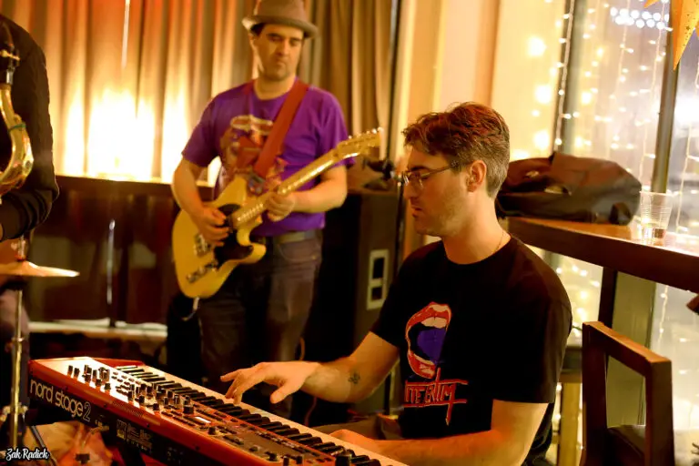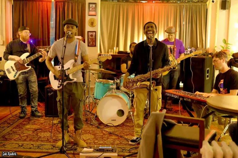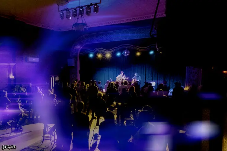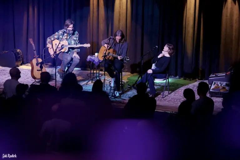 When Broemel invited Maggie Halfman back to the stage for “Flying Things,” Ramsey mentioned they had tried it during soundcheck and it gave him chills. With Halfman’s angelic vocal floating above their delicate picking, the entire room felt it too. Whether it was simply the magic of the moment or Lark Hall’s alleged resident spirit “Gertrude” giving her spectral approval, something special hung in the air. Broemel even paused to marvel at the audience’s reverent silence. The room was so locked in you could hear the old wooden floor creak when someone shifted their feet, or the faint crack of a beer can opening at the back bar and that was it. People came to listen and they understood the assignment.