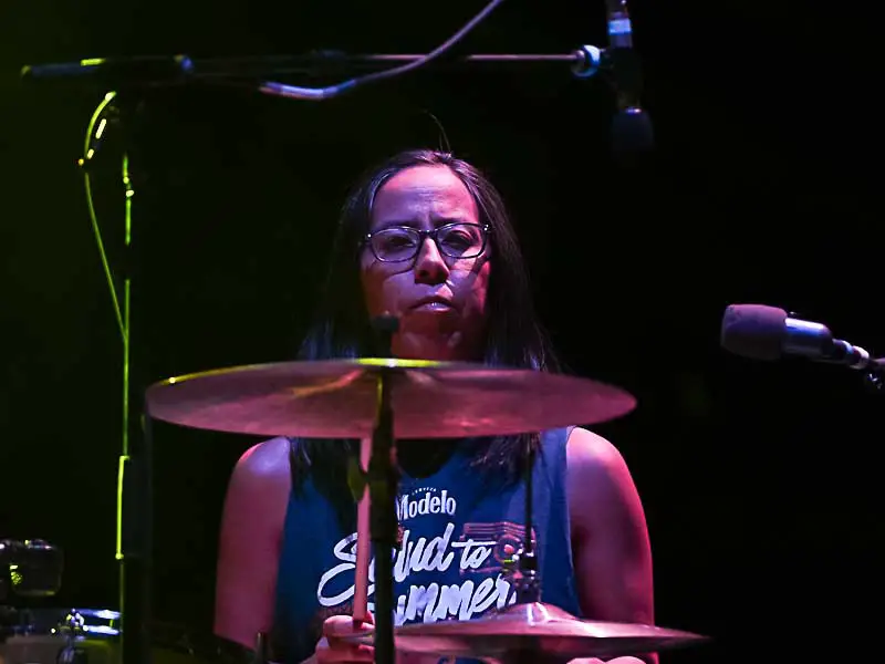 Melanie Radford on bass and Teresa Esguerra on drums more than held their own alongside Martsch. Radford looked like she was having the time of her life—tearing through bass lines, tossing her hair, and throwing high kicks with infectious energy. No matter the pace of the set, Esguerra kept things tight and precise, delivering a rock-solid performance behind the kit.