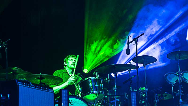 After a 15-song main set, the stage dimmed, leaving just a few headlamps from crew members moving quietly in the dark. Suddenly, the unmistakable tension-building notes of Jaws rumbled through the speakers—a dramatic and playful transition into the band’s three-song encore, which was met with roaring approval.