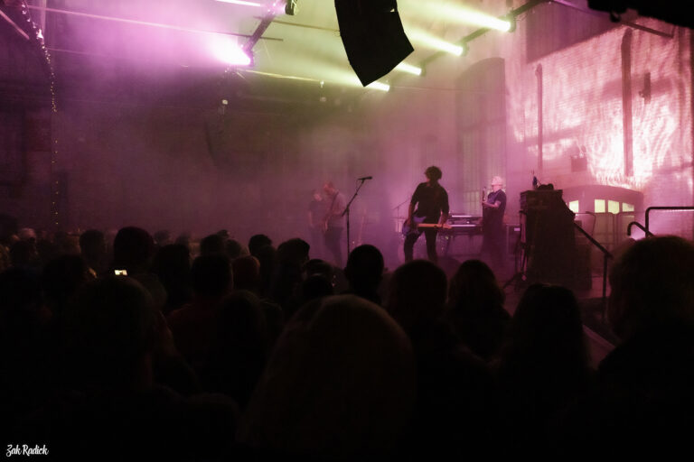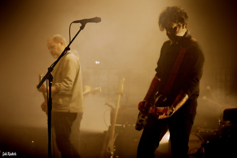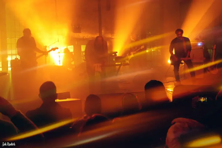 A delicate rendition of “Loved Ones” followed before the band surged back with a powerful take on “The Birth and Death of the Day.” Bathed in shadow, faces barely visible, the musicians swayed and surged with the music. Visibility hardly mattered so long as the room remained quiet, the sound carried perfectly. With the audience’s complete attention, each song felt like a shared experience, shimmering guitars swelling into walls of distortion, the band’s interplay so tight it bordered on telepathic.