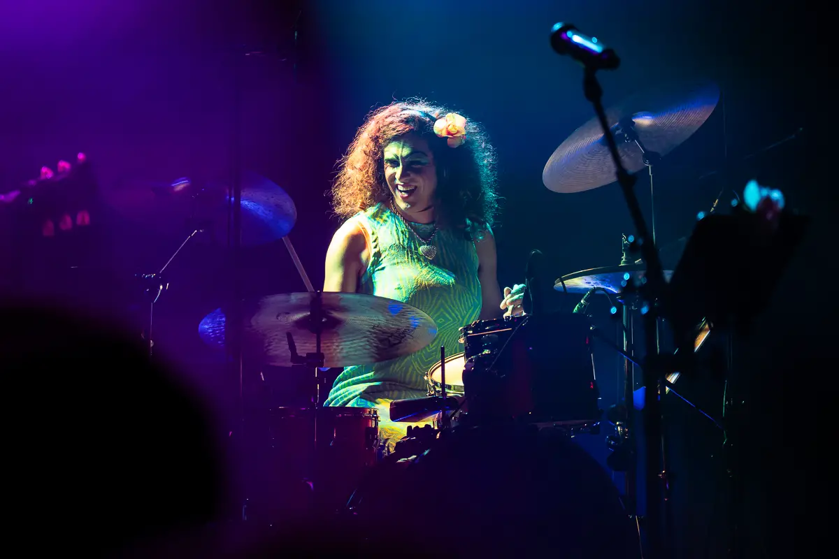 Formed in 2023 as a direct response to Tennessee’s drag ban, Bertha: Grateful Drag has quickly built a reputation as one of the most talked-about acts on the road. In a sea of Grateful Dead cover bands, Bertha distinguishes itself not only through its concept but through its musicianship. The seven-piece ensemble, whose members all go by the name “Bertha”, faithfully captures the Dead’s sound while also expanding on it. At the forefront are two lead vocalists whose powerful, expressive voices bring new life to the classic material. The result is a seamless fusion of counterculture and camp.