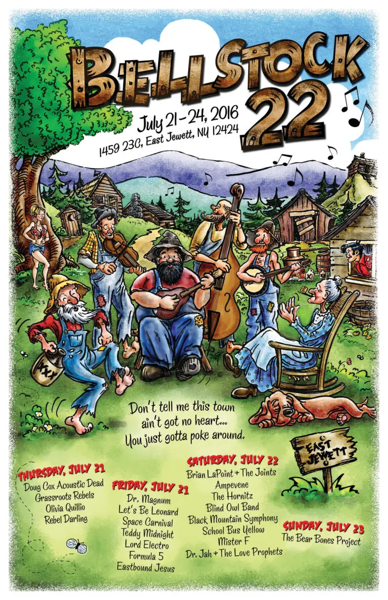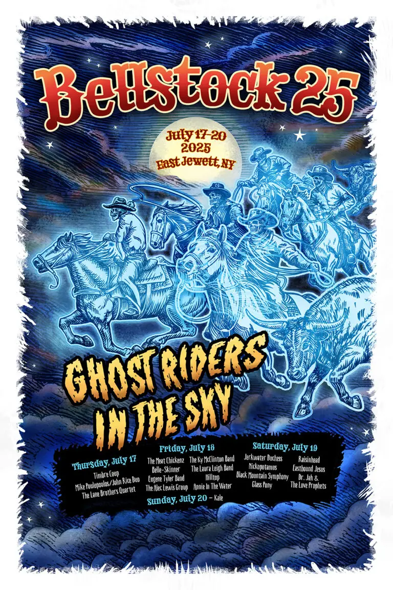 Included in this interview are some of the prints she likes the most – the most recent Bellstock, Ominous Seapods Year of the Dragon Tour, Day of the Deadbeats at Lark Hall, and the Max Creek Halloween at Fort William Henry, featuring skeletons of soldiers from the French and Indian War.