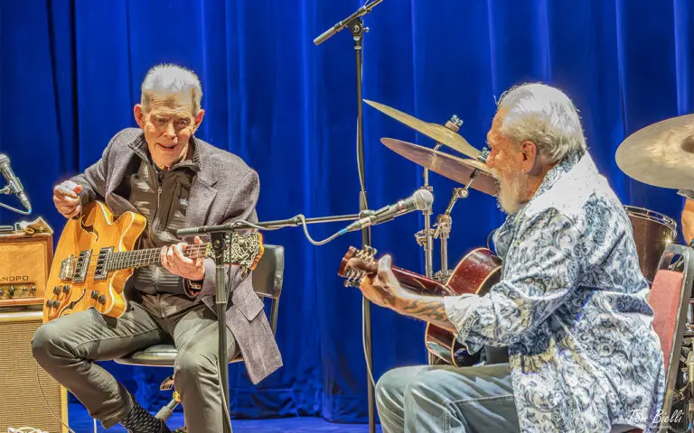 Kaukonen, who will turn 85 on December 23 of this year, joked a bit about his age to the mainly grey-haired audience.  At one point, while taking some time to retune his guitar between songs, he faced some gentle prodding from Casady.  Jorma replied “I’m comin’, I’m comin’.  Ya know, I don’t know if this is a good or bad thing, but I never really got my eyes fixed, so you are just a gentle, lovable psychedelic blur (referring to Cassidy) and out there is a dark and friendly ocean (referring to the adoring crowd)”