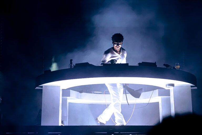 When Kaytranada stepped up, he did so from a central setup, surrounded by an array of turntables and controllers, moving fluidly between his own tracks and creative edits of other artists’ work. His set pulled from his latest album era and other beloved songs, the energy was unmistakably his warm bass, chopped-up vocal hooks, vintage funk and disco inflections layered into dance-floor moments.