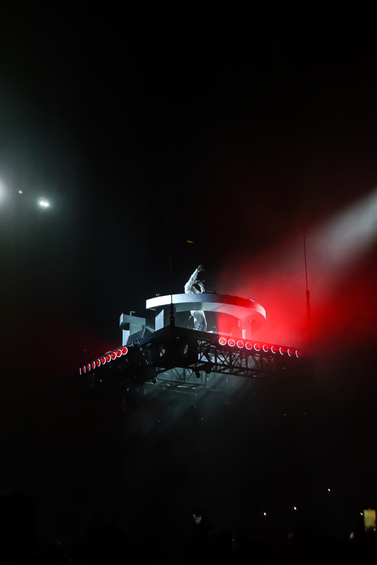 Standout moment: about midway through, Kaytranada dropped a slowed-down rework of his anthem “10%” followed by a deep dive into “GLOWED UP”-style groove. The floor erupted. His final minutes segued into a rising loop that throbbed until the lights cut just before transitioning to Justice.