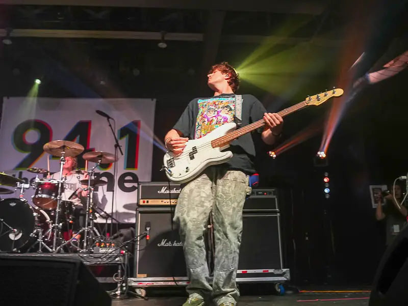 Lead singer Kyle Morris showcased his vocal range, delivering a forcefully fierce falsetto on “I Believe In a Thing Called Love” by The Darkness. The dude can sing and commands the stage and beyond as if it’s his world we are visiting as guests. Near the end of their set, Morris set his body adrift amongst the sea of onlookers, floating as he surfed until security helped him to solid ground. Guitarists Brenton Carney and Cole Male were a current of constant motion, and bass player Jared Hornbeek added to the visual interest with his masterful movement.