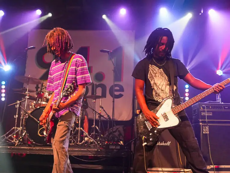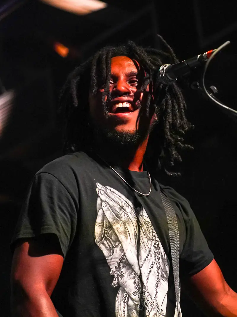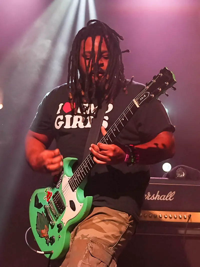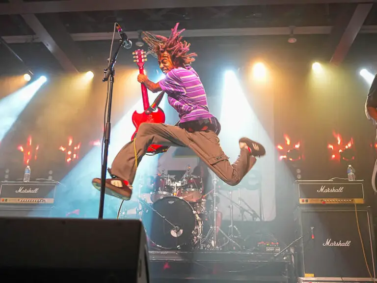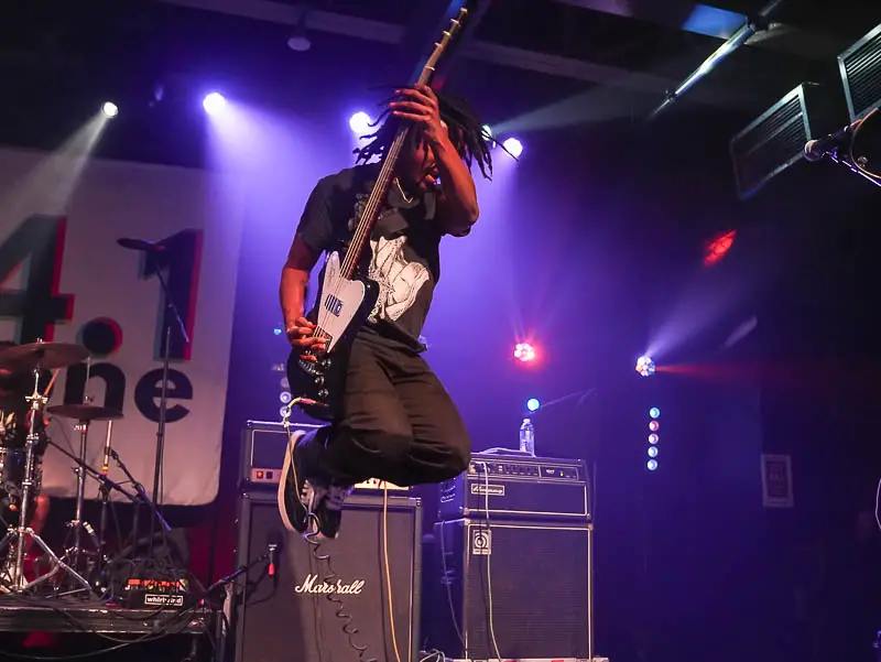 Soaring highest in complete control of the concert hall was lead singer Eric Dangerfield, 120 lbs soaking wet. After a successful run during last year’s Warped Tour, the frontman was at ease in front of a large gathering of people. Self-aware of their unique position as an African American punk-rock band, the slender singer leaned into it when he introduced their cover of “My Own Worst Enemy” by Lit, referring to his own band as Dark.