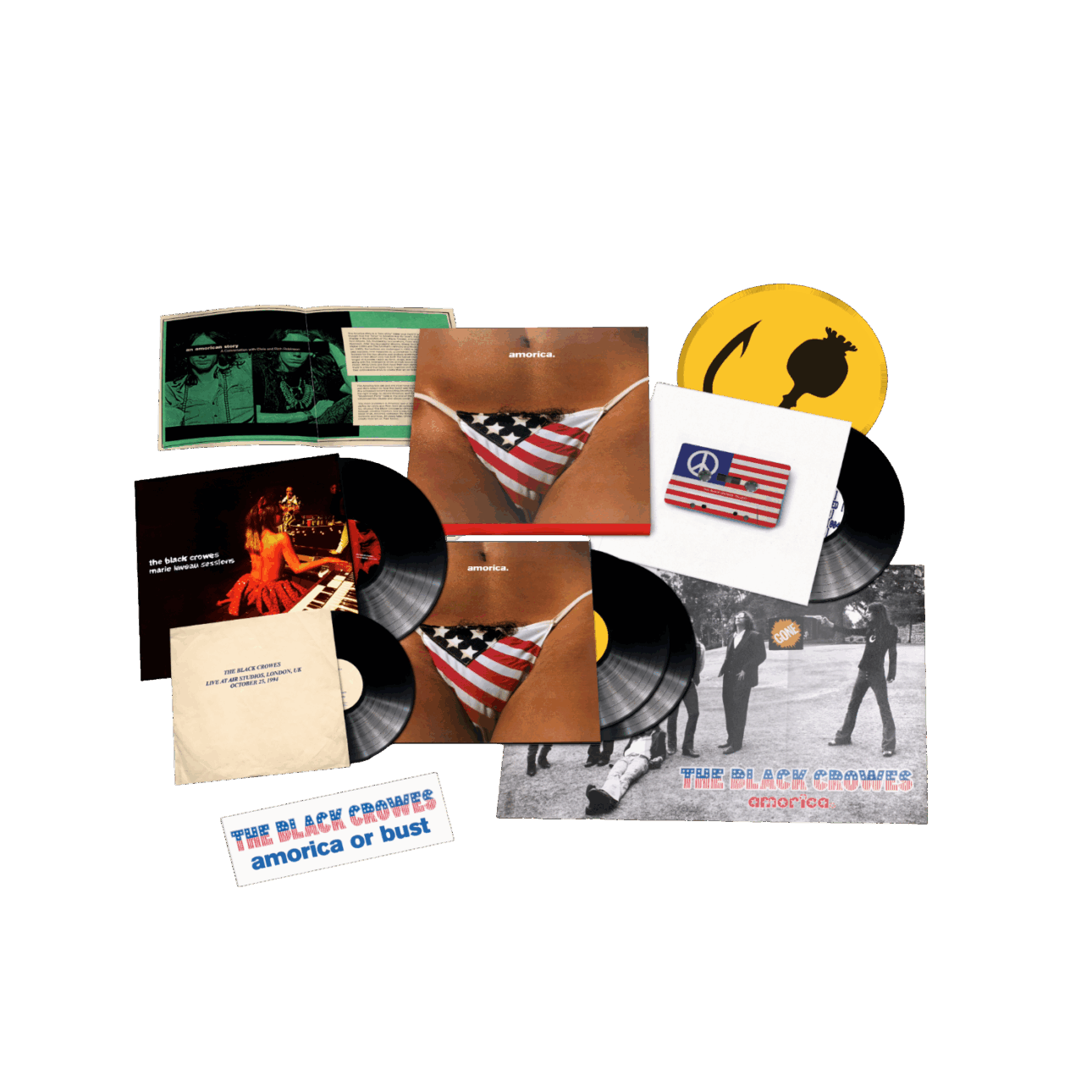 Upon its release in late 1994, the Black Crowes’ third album sliced right through the alternative rock boom of the day with a both visually and sonically daring work that boldly brought greasy, soulful AOR back into the conversation while alarming censors by borrowing its cover art from the Bicentennial issue of Hustler Magazine. In belated honor of its 30th anniversary comes this excellent deluxe box set, which contains an expanded edition of the original LP to include three B-sides (namely their cover of Taj Mahal’s “Chevrolet” from the “Wiser Time” single); Tallest, which is nine newly remixed songs from the sessions for the album the band scrapped prior to making Amorica; the Marie Laveau Sessions from October 1992 featuring three previously unreleased recordings in “Bitter, Bitter You,” “Title Song,” and “Paris Song,” an instrumental that evolves into the Amorica track “Cursed Diamond” and four live tracks that were recorded for a worldwide live radio broadcast to premiere Amorica from AIR Studios in London, UK, on Oct. 25, 1994. And for those who wisely choose the LP version of this box set, other ephemera contained within includes a fanzine with an interview with Chris and Rich chronicling the evolution of Amorica, a classic 20″x30” poster, a bumper sticker and a slip mat.