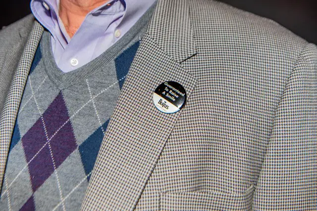 Tom Frangione’s excitement was infectious. He chattered urgently and intelligently about the importance of re-introducing the anthology to modern audiences, not before stopping to throw up a peace sign “for Ringo!”. A closer look into his outfit highlighted a promotional pin from the release of the original Anthology in 1995 reading “Guaranteed To Raise A Smile”; a perfect detail to surmise both the event and Mr. Frangione’s personality.