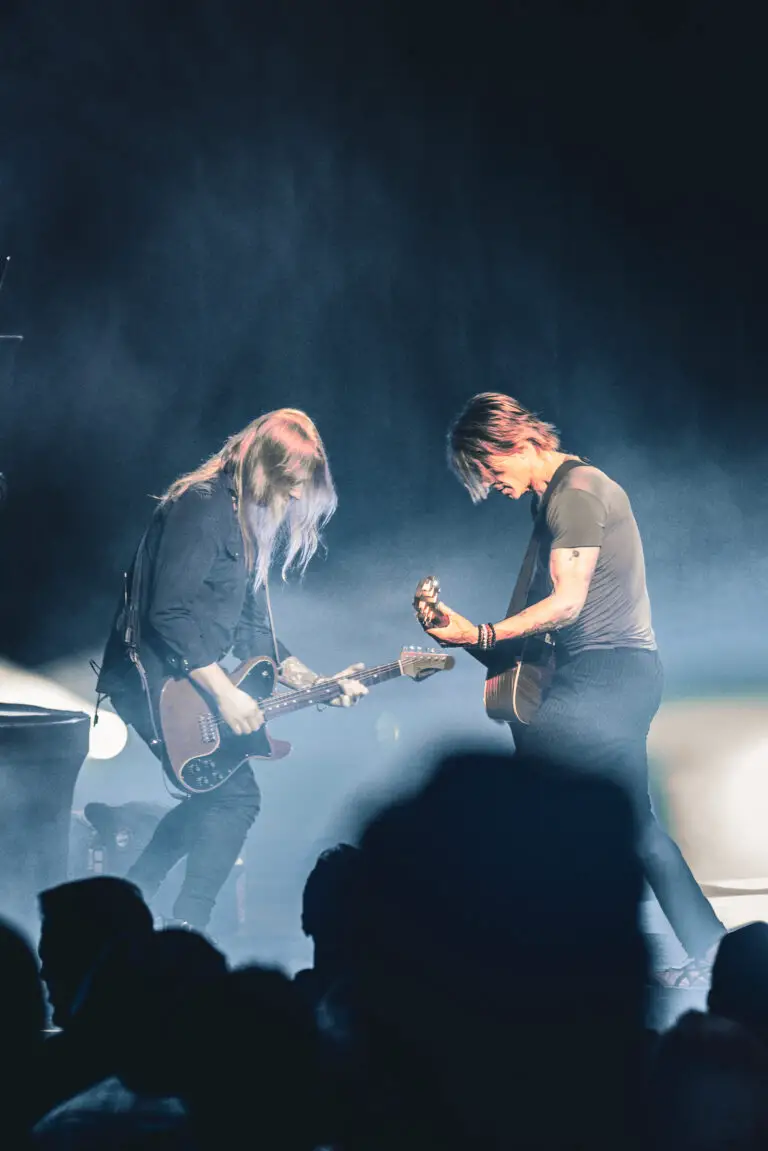 When the Goo Goo Dolls—John Rzeznik and Robby Takac—finally took the stage, the crowd erupted. They immediately ran into “Naked,” a high-tempo, energetic opener that set a punchy tone for the extensive set. Following came “Slide,” a song that truly showcases the vocal quality on a melancholic track. Their stage presence was magnetic, moving with a natural swagger and lifelong chemistry. The set continued with the hits “Think About Me” and “Here Is Gone,” followed by the fan-favorite ballad “Black Balloon.” The band’s versatility was on full display as they transitioned from the power-pop of “Miracle Pill” to the reflective mood of “Nothing Lasts Forever” and “January Friend.”