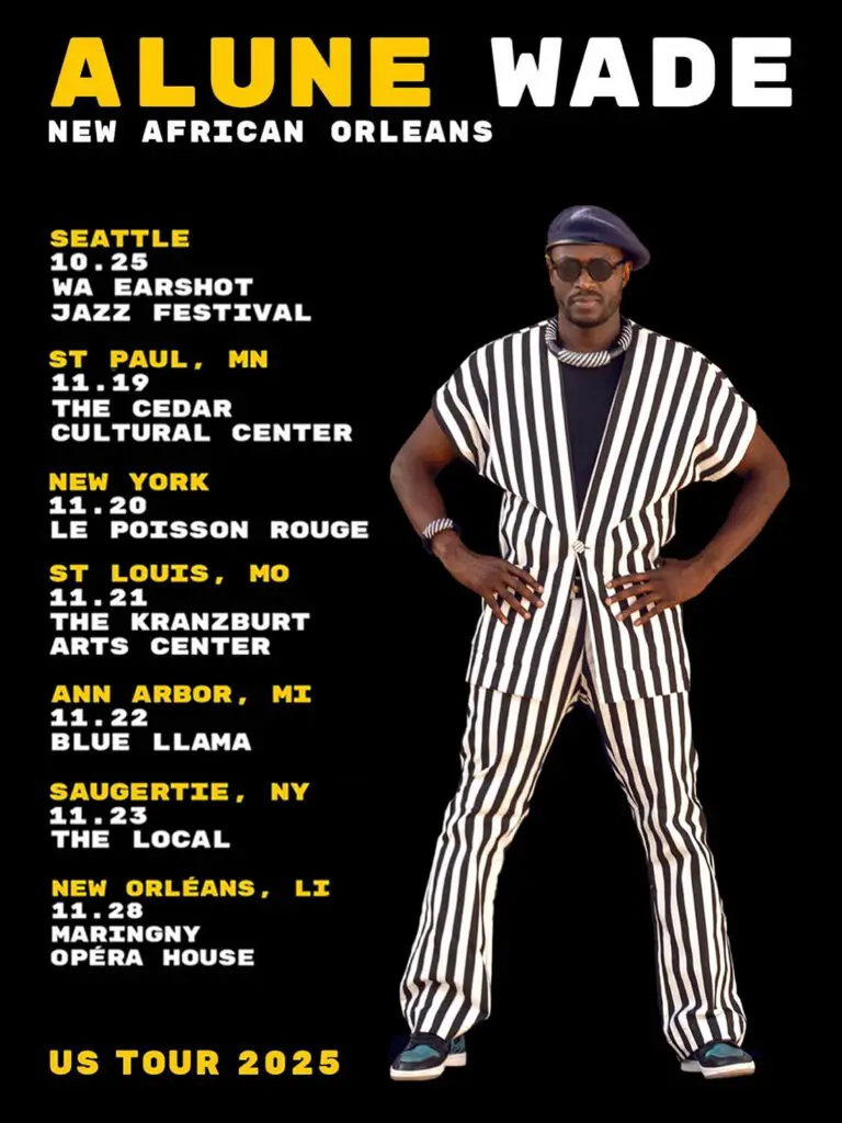 Senegalese bassist and composer Alune Wade will embark on a North American run of shows in November, spanning from the Midwest to the Northeast, where he will explore the junction between his native West African rhythms and brass band music from New Orleans that is captured in his sixth studio album, New African Orleans.