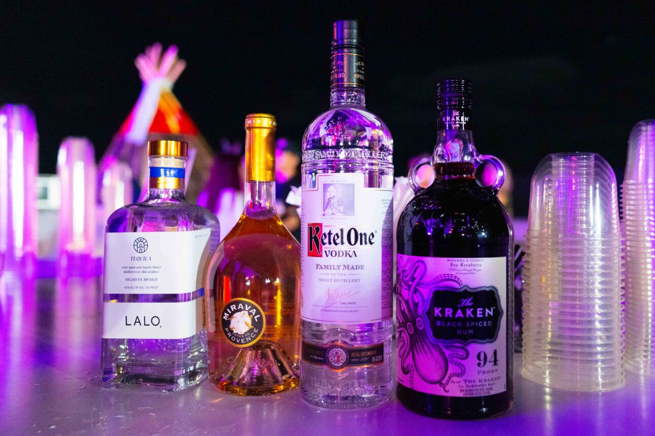 The party began with chic sophistication from James’ sunset selection of funkadelic, disco-tized wax. Attendees walked the sandy runway to the SCOPE art fair gates, where just beyond awaited a surfside garden of earthly delights. The tent space was transformed with large art installations, vendors and activations. At the entrance, a golden Mayan pyramid made from rolling coolers represented immigrants across America who earn a living as street vendors, while around the corner was a full-on dive bar, complete with a pool table, foosball, a vintage arcade video game machine and a Touch Tunes jukebox.