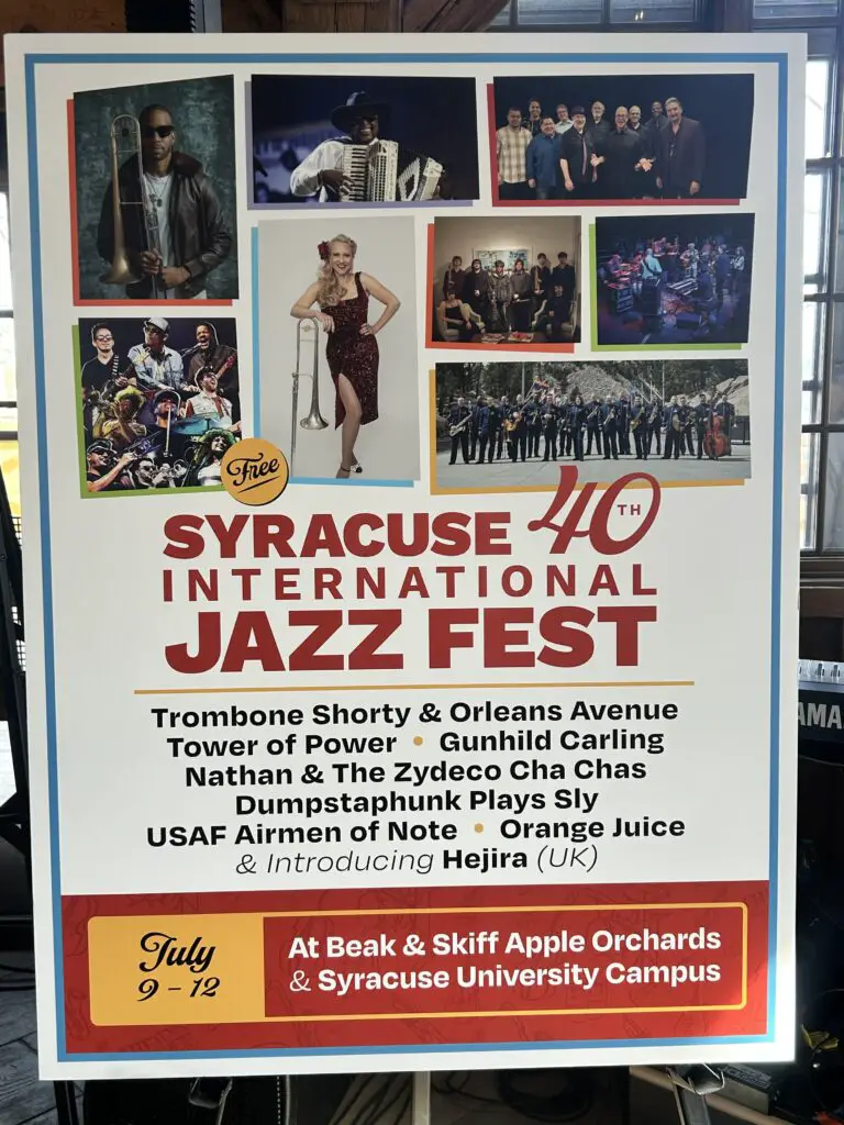 The Syracuse International Jazz Fest announced its 40th anniversary lineup at Beak & Skiff Apple Orchards, revealing a four-day run July 9 through 12 that splits between the LaFayette orchard and the Syracuse University campus. All performances are free and open to the public.